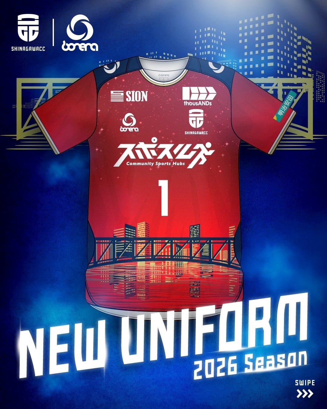 新しいユニフォームは、よりBRIDGESを強く表現するために前面背面に品川を象徴する橋のデザインを入れました。
